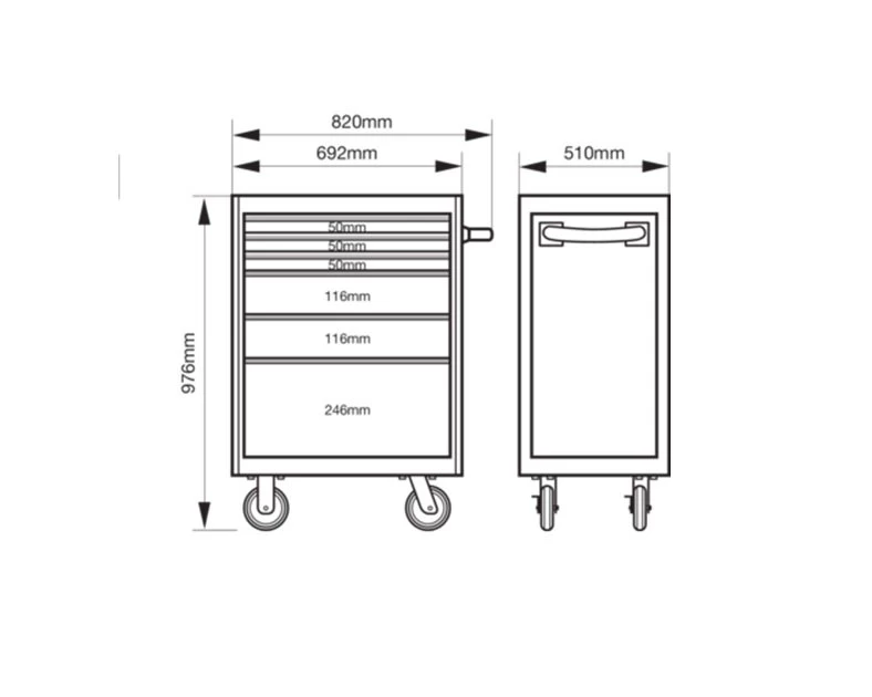 - 6 drawers heavy-duty tool trolley is based on a solid steel dual-walled case construction