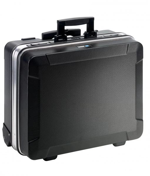 - Mobile tool case made of ABS material with user-friendly telescopic handle and two free running wheels