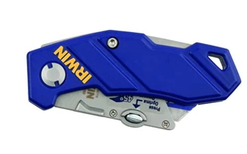 This Irwin 10507695 Trapezoid Knife is designed for cutting the toughest materials. It features a 45° quick-change mechanism to increase both productivity and safety as well as extended thumb ledge, and wire stripper. It is extremely high quality yet compact, perfect to have to hand on the job site.