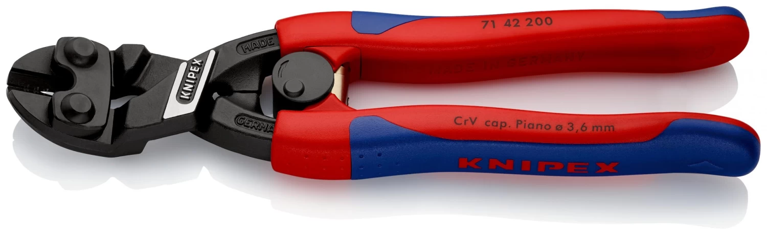 - 71 42 200 KNIPEX CoBolt® With precision cutting edges for soft, hard and piano wire. Cuts bolts, nails, rivets, etc. up to Ø 5.2 mm.