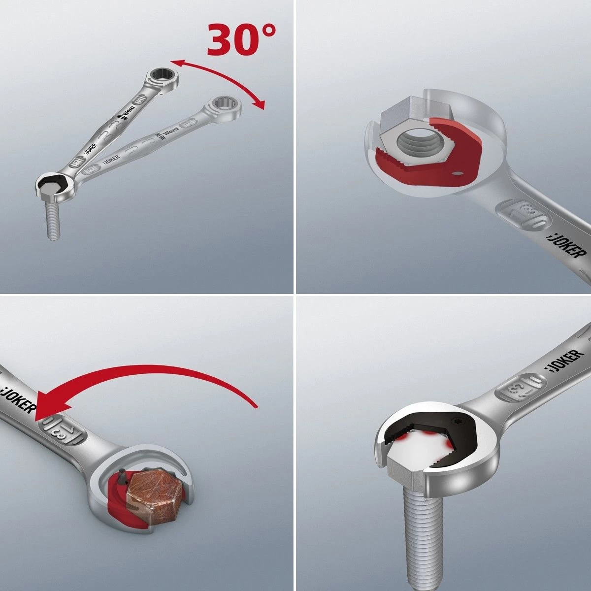 - Return angle of only 30° at the open end to avoid time consuming flipping of the wrench during fastening jobs.